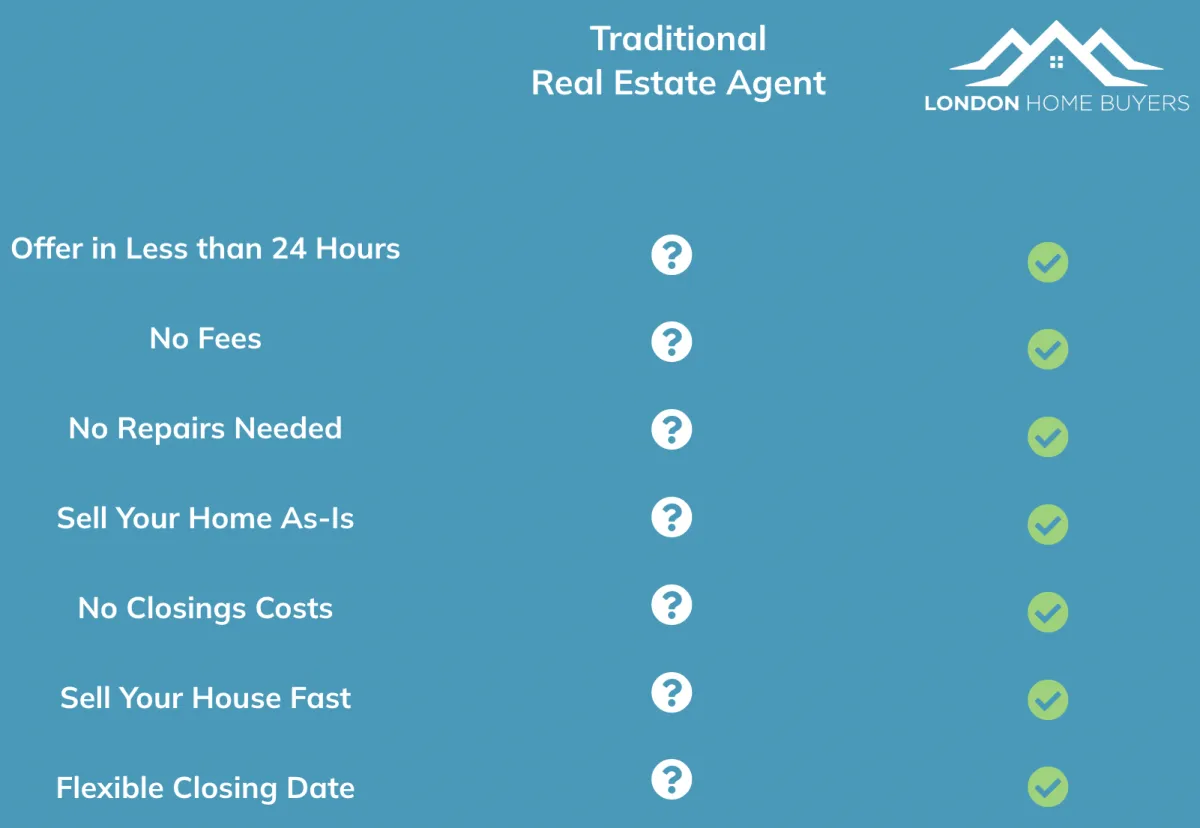 You will never pay any commissions or fees. London Home Buyers goes above and beyond to help sellers cover legal fees, moving expenses, or first and last month's deposit at a new rental.